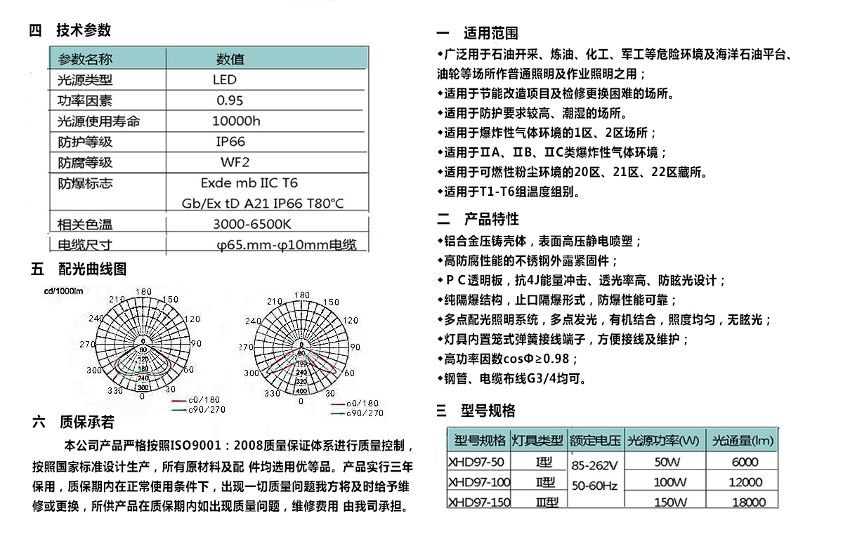 广泛用于石油开采、炼油、化工、军工等危险环境及海洋石油平台、油轮等场所,作远距离泛光照明及路灯照明之用;