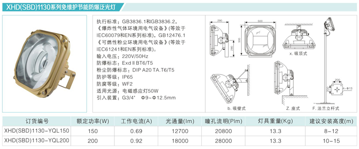 XHD(SBD)1130系列免维护节能防爆泛光灯