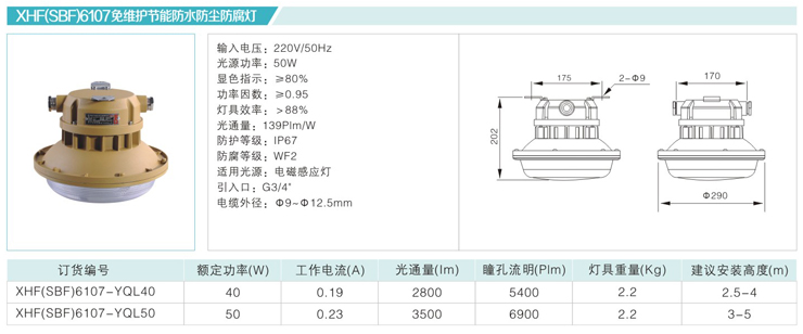 XHF(SBF)6107免维护节能防水防尘防腐灯