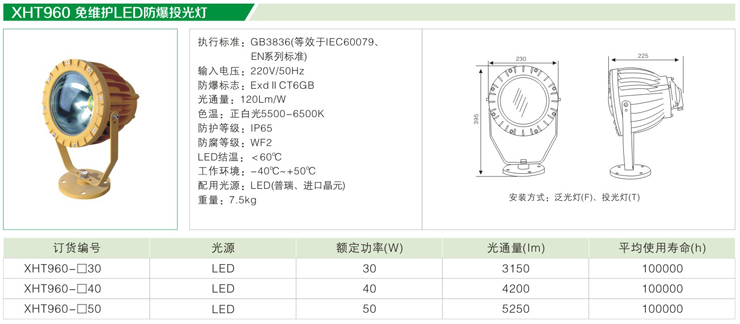 XHT960免维护LED防爆投光灯