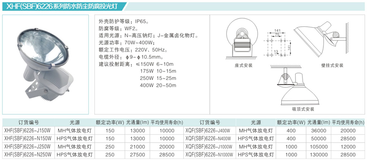 XHF(SBF)6226系列防水防尘防腐投光灯
